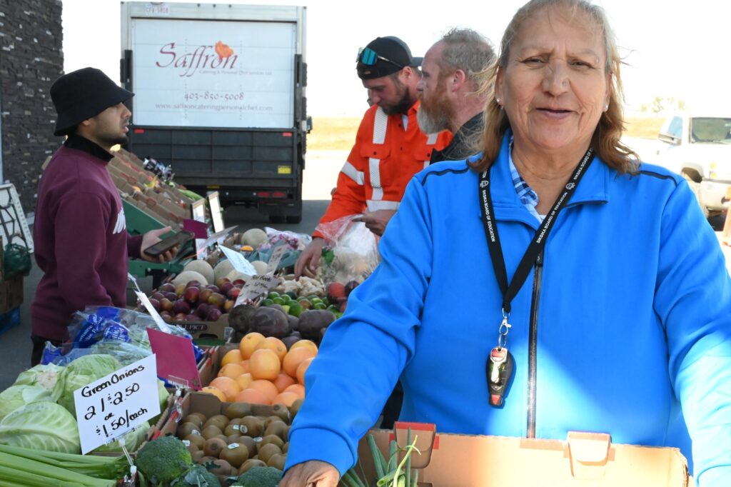 : “The Siksika Food Centre and our partners, Healthy Choices Markets, and Saffron Catering hosted our fall harvest fundraiser. In order to draw attention to the new site of the Food Centre which will be located in one of the Bays near the Trail Market. We brought more food item to give the public more shopping options. We reached out through our Facebook page to see what our customers wanted to see. Saffron Catering brought their food trailer to serve food for the public. All proceeds gathered will go toward the new Food Centre. Thank you.”