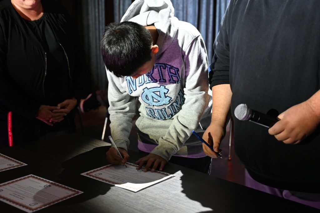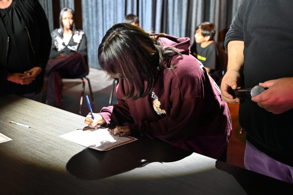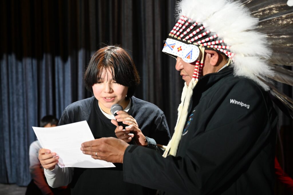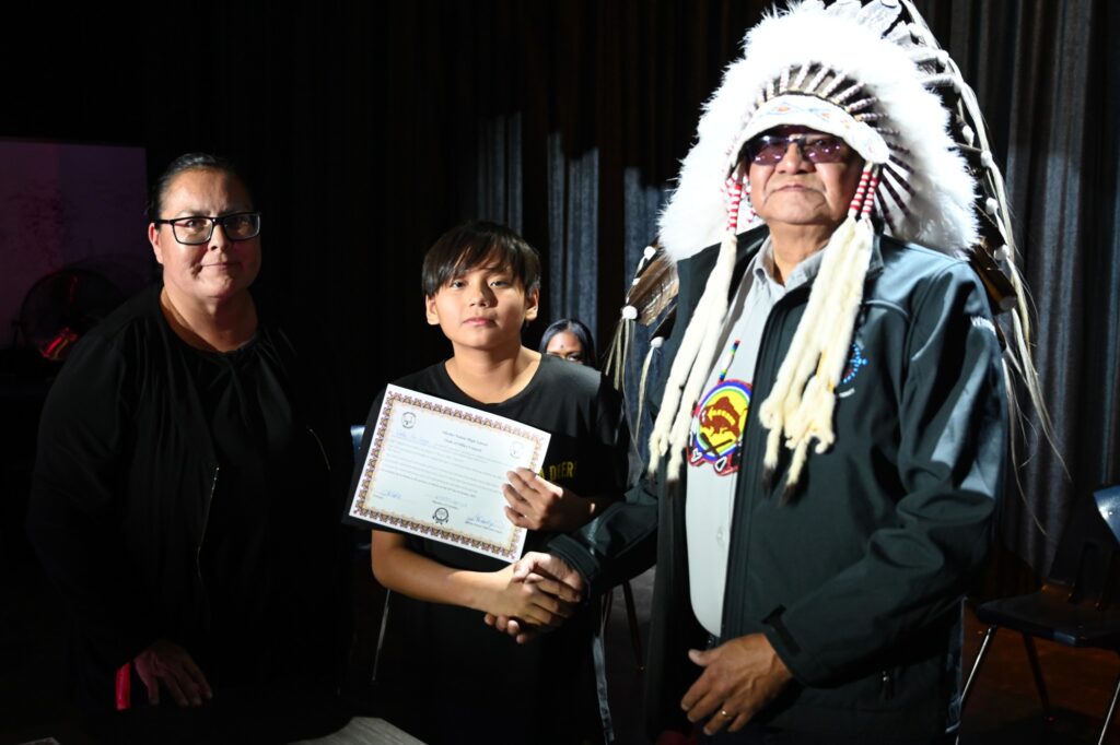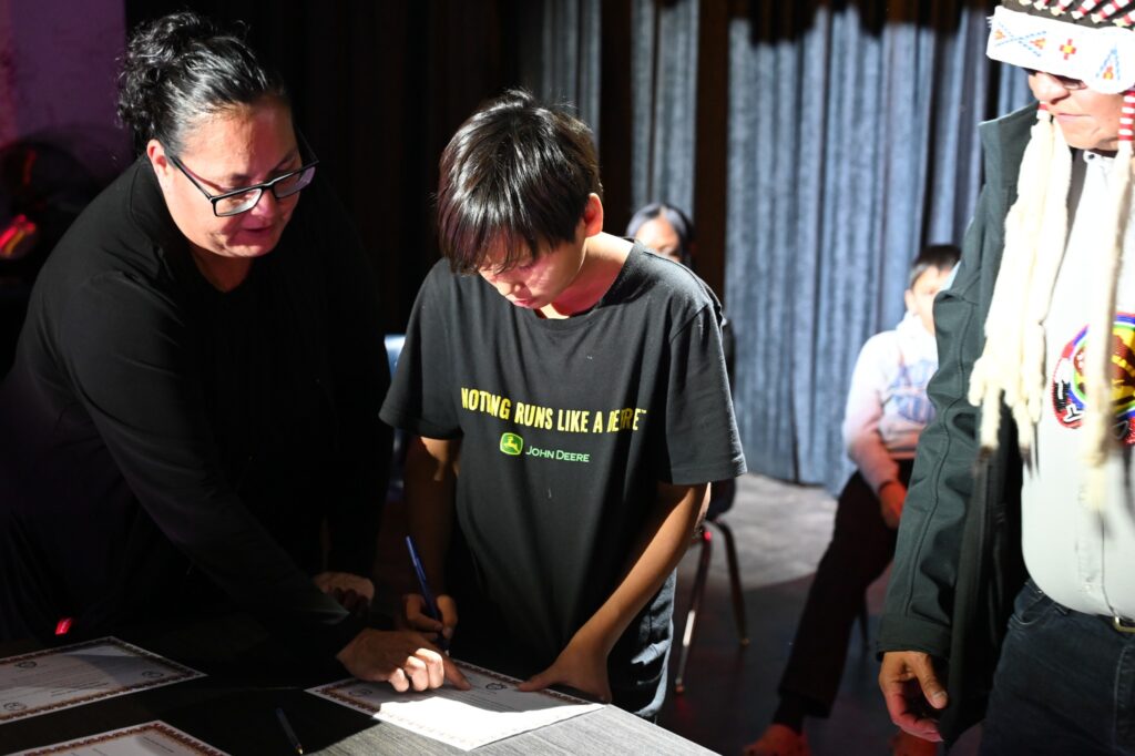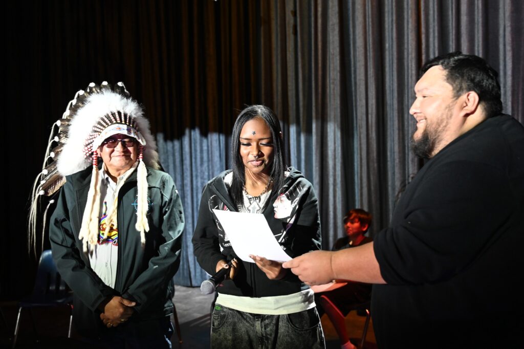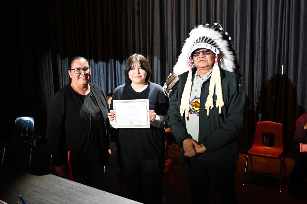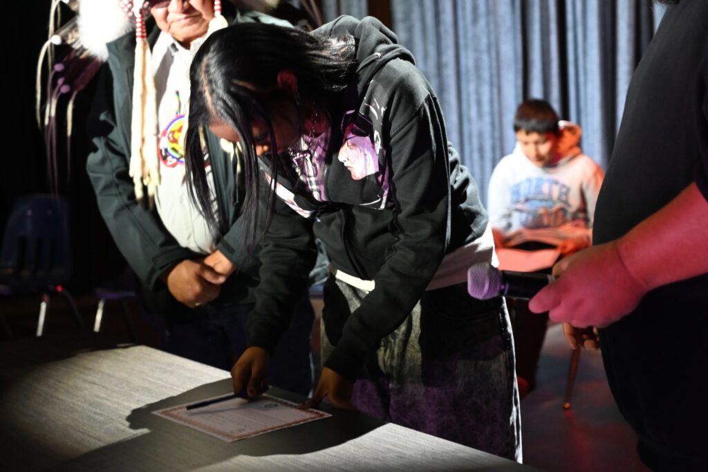 Councillors Carlin Blackrabbit and Hector Winnipeg joined the ceremony to guide them through their oaths and signatures, alongside Principal Lisa Calfrobe, who shared her encouragement and support. ![]()