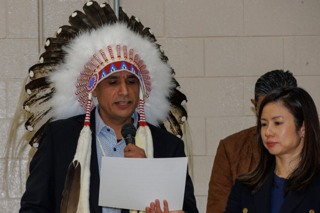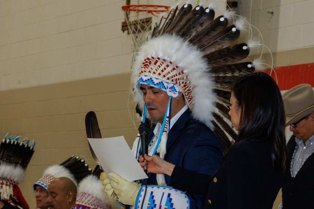 Samuel Crowfoot and several councillors were sworn in as Siksika’s new Ohkinniinaa ki Ninaaiks (Chief & Council) during the inauguration ceremony at the Siksika Sportsplex.