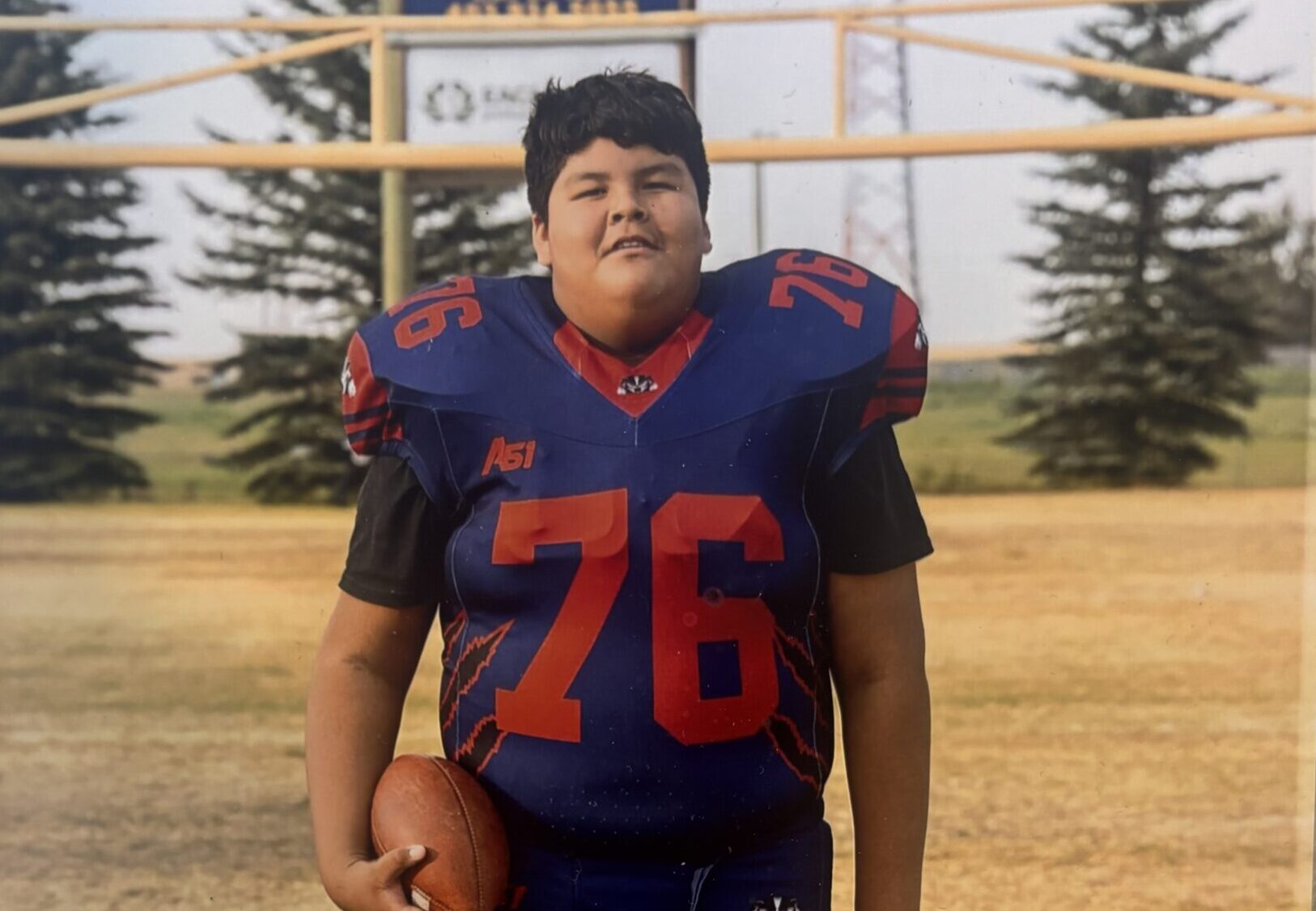 Frankie Wright is 12 years old and a proud member of Siksika. His grandparents are Lucille Wright and Ted Ayoungman. Recently, Frankie discovered that he is a natural-born football player. Standing at an impressive 6’2”, he has already proven himself to be one of the best, earning the Best O-Lineman of the Year award—an honor given to players who demonstrate outstanding skill and dedication throughout the season. Frankie received this award in late November at the Strathmore Civic Centre. He is strongly supported by his family, especially his grandmother, Lucille (Lucy) Wright.